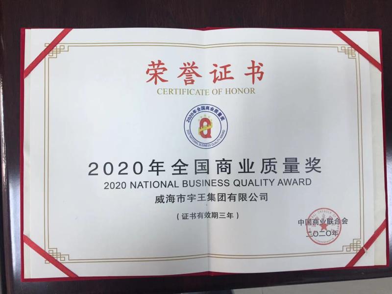 會上,宇王集團(tuán)榮獲2020年全國商業(yè)質(zhì)量獎。