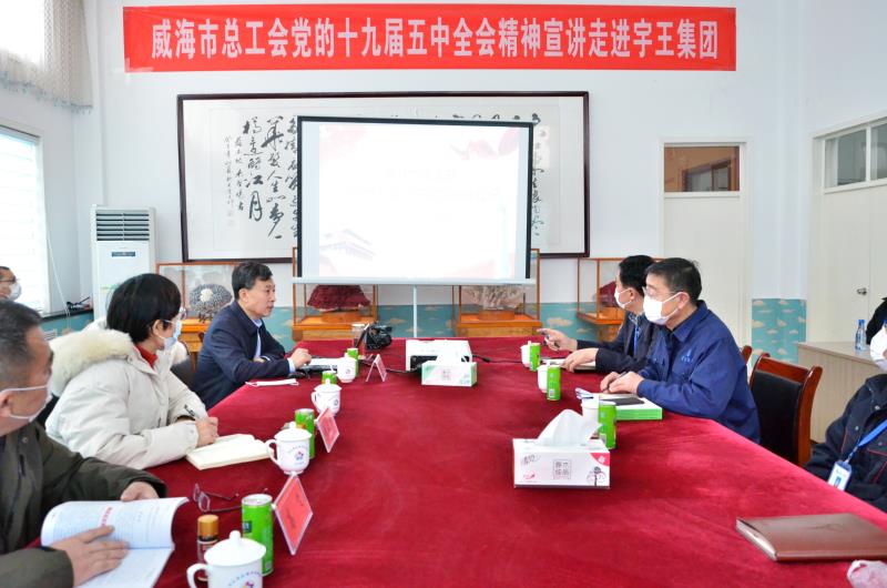 12月29日,威海市總工會黨的十九屆五中全會精神宣講走進宇王集團,宇王集團被授予山東省農(nóng)林水系統(tǒng)軍民融合發(fā)展榜樣以及勞模和工匠人才創(chuàng)新工作室牌匾。