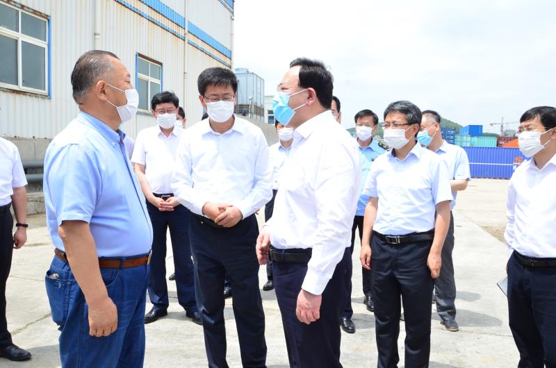 6月9日上午,市委副書(shū)記、市長(zhǎng)閆劍波攜市公安局、衛(wèi)生健康委、市場(chǎng)監(jiān)管局等部門(mén)領(lǐng)導(dǎo),在經(jīng)濟(jì)技術(shù)開(kāi)發(fā)區(qū)領(lǐng)導(dǎo)的陪同下來(lái)威海市宇王集團(tuán)海洋生物產(chǎn)業(yè)園實(shí)地調(diào)研疫情防控工作,宇王集團(tuán)董事長(zhǎng)苗強(qiáng)及相關(guān)領(lǐng)導(dǎo)參加調(diào)研。