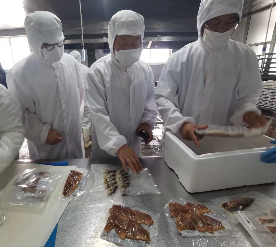 加工車間工人們緊張有序地工作,將可口的烤魚(yú)、優(yōu)質(zhì)的帝王蟹包裝、裝箱源源不斷發(fā)往世界各地,送到了消費(fèi)者的餐桌上。金琳公司李柏省經(jīng)理、宇祥公司于飛經(jīng)理不斷到全國(guó)乃至世界各地參觀學(xué)習(xí)先進(jìn)設(shè)備、技術(shù)與質(zhì)量標(biāo)準(zhǔn),緊隨時(shí)代發(fā)展,不斷調(diào)整產(chǎn)品方向,提高產(chǎn)品質(zhì)量。