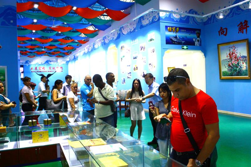 9月14日,來華參加研修班的古巴政府代表團一行20余人,在中聯(lián)部、農業(yè)部及省市海洋漁業(yè)部門領導陪同下考察宇王集團海洋生物產(chǎn)業(yè)園。