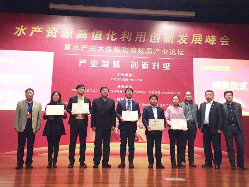 此次峰會(huì)對(duì)水產(chǎn)資源高值化利用領(lǐng)域的創(chuàng)新及優(yōu)秀產(chǎn)品進(jìn)行新聞發(fā)布,經(jīng)過(guò)企業(yè)申報(bào)、高值化利用委員會(huì)審查、認(rèn)定、投票及公示的流程,最終認(rèn)定出5個(gè)創(chuàng)新產(chǎn)品及11個(gè)優(yōu)秀產(chǎn)品。我公司榮獲2項(xiàng)創(chuàng)新產(chǎn)品獎(jiǎng)、2項(xiàng)優(yōu)秀產(chǎn)品獎(jiǎng),其中魚(yú)鱗膠原蛋白肽粉及海參肽粉被評(píng)為創(chuàng)新產(chǎn)品、魚(yú)鱗膠原蛋白及海參飲品被評(píng)為優(yōu)秀產(chǎn)品,并在現(xiàn)場(chǎng)進(jìn)行了產(chǎn)品展示。
