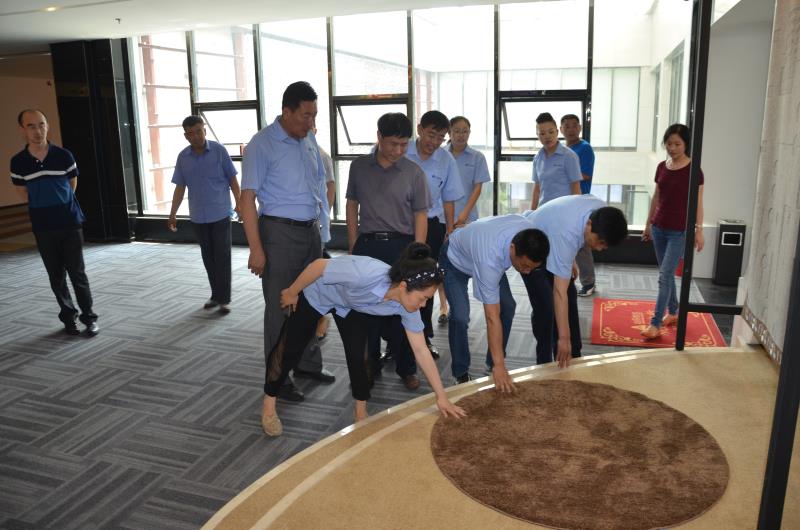 隨后,宇王黨員一行來(lái)到山花地毯集團(tuán),從生產(chǎn)車(chē)間到山花商務(wù)中心進(jìn)行了細(xì)致的觀摩。伴隨著山花地毯集團(tuán)黨委副書(shū)記的耐心講解,大家對(duì)山花地毯嚴(yán)謹(jǐn)?shù)墓に嚵鞒毯驼J(rèn)真的工作態(tài)度紛紛表示贊賞。