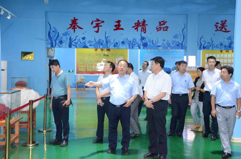2017年8月29日,威海市政府副市長(zhǎng)高書良及相關(guān)部門領(lǐng)導(dǎo)一行蒞臨威海市宇王集團(tuán)海洋生物科技產(chǎn)業(yè)園指導(dǎo)工作。宇王集團(tuán)董事長(zhǎng)苗強(qiáng)陪同。