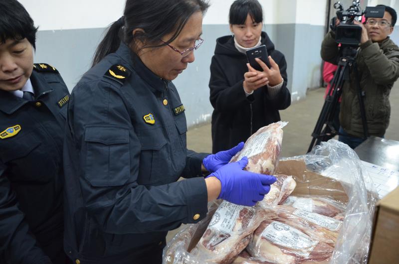 該批牛肉為冷凍牛腱子肉,原產(chǎn)國(guó)為巴西,重量約為26噸,這是威海港口岸獲得進(jìn)口肉類指定口岸資質(zhì)后,首次開(kāi)展進(jìn)口肉類業(yè)務(wù)。山東威海檢驗(yàn)檢疫局工作人員來(lái)到宇王保稅倉(cāng)庫(kù),現(xiàn)場(chǎng)核查該批貨物的內(nèi)外包裝、標(biāo)識(shí)與證書內(nèi)容的一致性,經(jīng)檢驗(yàn)檢疫合格后,該批牛肉即可投放國(guó)內(nèi)市場(chǎng)。