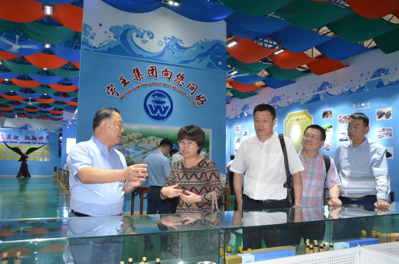 杜正芹一行先后參觀了宇王集團海洋生物蛋白、海藻多糖生產(chǎn)車間、研發(fā)中心、海洋館。邊參觀邊對宇王集團的食品管理、加工過程、產(chǎn)品質(zhì)量等詳細(xì)詢問,對宇王集團全面加強質(zhì)量管理、執(zhí)行同線同標(biāo)同質(zhì)標(biāo)準(zhǔn)予以高度認(rèn)可。