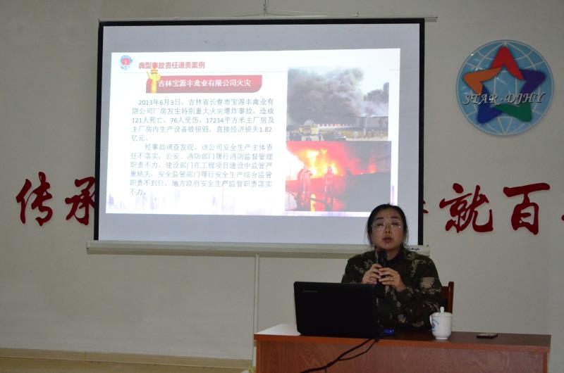 培訓(xùn)中,于警官以授課的形式,講解了火災(zāi)的基本知識,結(jié)合近年來發(fā)生的全國各地典型火災(zāi)事故案例,闡明了此次消防培訓(xùn)的重要性,詳細為職工講解了消防安全“四個能力”建設(shè)標準、消防設(shè)施、滅火器材的使用等知識,并從防火、滅火、自救逃生等方面,深入淺出的解讀了火災(zāi)發(fā)生的原因,傳授了如何報火警、如何撲救初起火災(zāi)、如何火場逃生自救等常識。