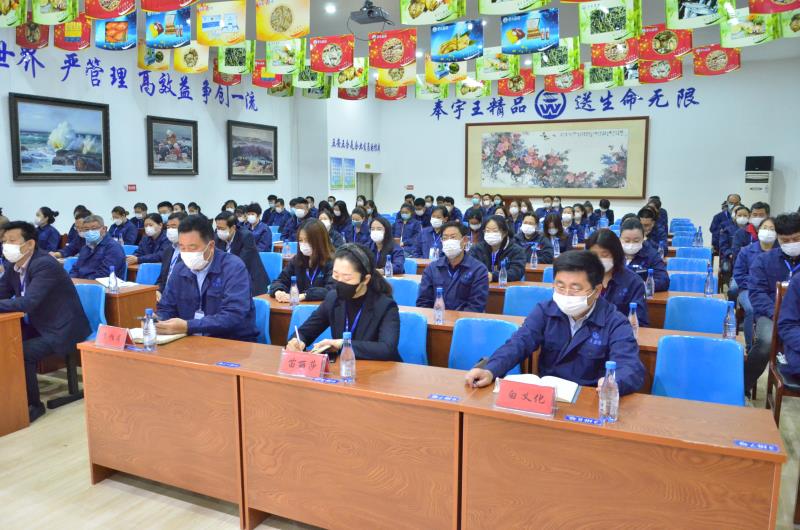 會上,苗強董事長作專題講話,他首先就1月----4月份公司防控疫情、復工復產(chǎn)等工作作簡要總結(jié)。到3月中旬,宇王集團的水產(chǎn)品加工車間、海洋生物加工車間、內(nèi)貿(mào)及軍供加工車間已全部正常生產(chǎn)。集團對全體職工建立行程檔案,及時匯報、嚴謹記錄;采取嚴格防控措施,員工進入公司全程佩戴口罩,園區(qū)內(nèi)車間、道路、班車、辦公樓全面消毒不留死角不漏盲區(qū),一天不少于三次,全天定時定點測溫不少于兩次;食堂分時段分區(qū)域有序進餐,同方向,保距離,不逗留,不聊天,并加強對員工的培訓和教育,提高科學防控意識。