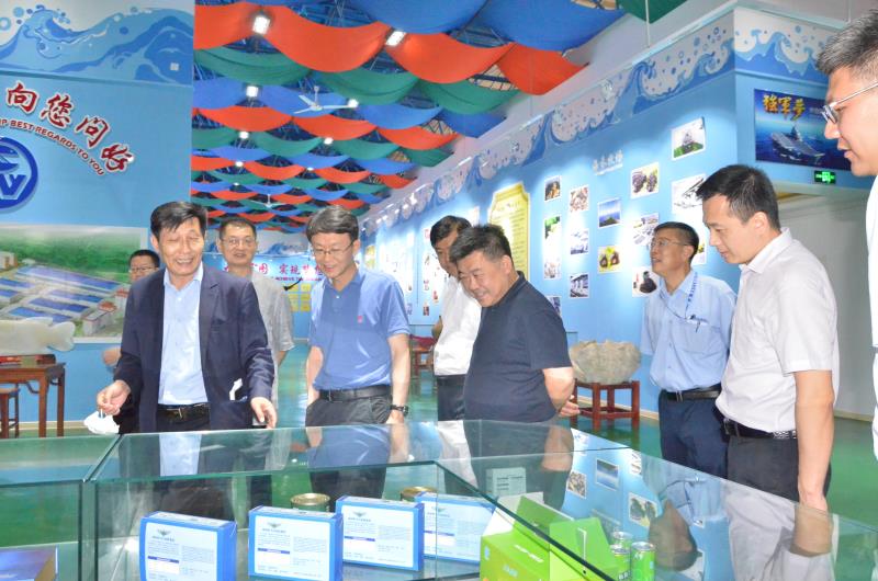 考察組一行先后參觀公司海洋生物館、海洋生物膠原蛋白加工車間、海藻多糖加工車間,宇王集團常務(wù)副總李建忠詳細介紹了公司的發(fā)展歷程、人才引進成果、產(chǎn)業(yè)結(jié)構(gòu)及各項科技研發(fā)成果。王曉副廳長及其他領(lǐng)導(dǎo)紛紛對宇王集團的發(fā)展表示肯定,并對公司的藍色海洋科技發(fā)展戰(zhàn)略和人才儲備計劃給予高度關(guān)注和重視。