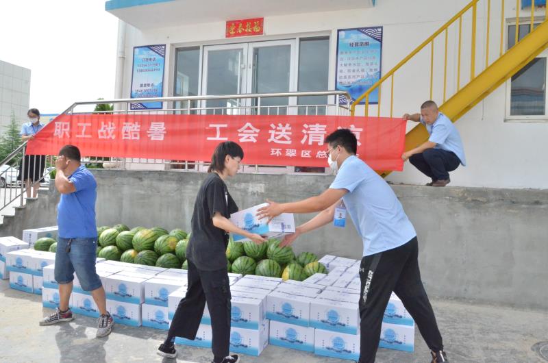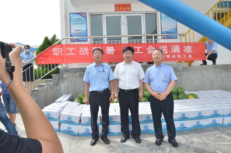 8月14日上午,環(huán)翠區(qū)總工會(huì)黨組書(shū)記、主席鄒杰來(lái)到宇王集團(tuán),為炎炎烈日下仍堅(jiān)守崗位的工作人員送去防暑降溫慰問(wèn)品和貼心的關(guān)懷。